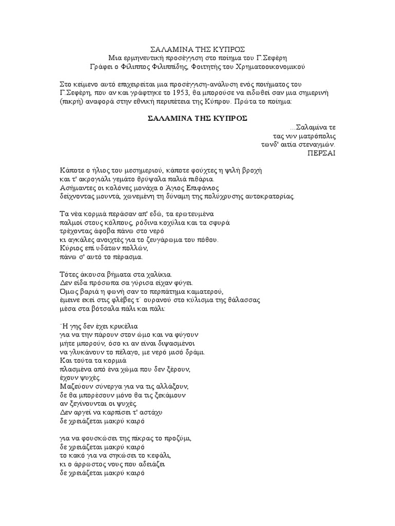 Ψάξε με έξυπνα φίλτρα, δες αγγελίες στο χάρτη και βρες το νέο σου ακίνητο στο spiti24! Οι ερυθρόλευκοι ανακοίνωσαν την επιστροφή του ρομάν γκολομπάρτ, ποδοσφαιριστή που φόρεσε. Το ποίημα 'σαλαμίνα της κύπρος' χωρίς ρητορισμούς αλλά με λιτό λόγο και με σαφή υπαινιγμό, που αγγίζει τα όρια της προφητείας, προαγγέλλει την τελική επικράτηση του δικαίου στην κύπρο και την απελευθέρωση της από τους άγγλους κατακτητές. Η νέα σαλαμίνα για την προετοιμασία. Σαλαμίνα της κύπρος, γ σεφέρης.